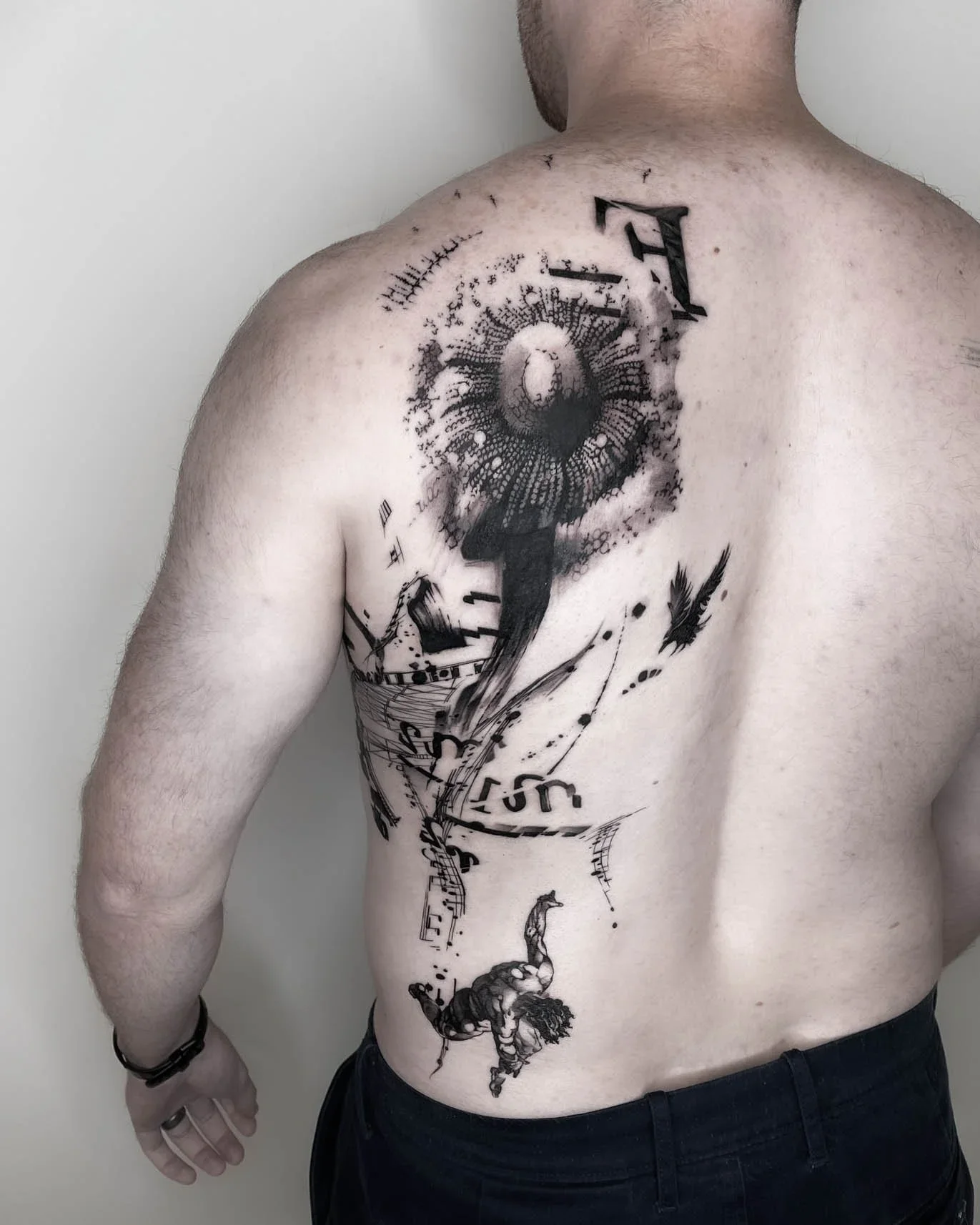 Les tatouages Muse.Ink de Walter d’Avignon à Paris sont des créations sur mesure, entièrement pensées pour chaque client. Inspirés par un son, une chanson, un bruit naturel, ou même un fan art (portrait d’un artiste, pochette d’album…), les projets peuvent être figuratifs ou abstraits. Chaque tatouage devient ainsi une traduction visuelle de votre histoire, de vos émotions et de vos passions, mêlant créativité, geste et expression personnelle. Walter conçoit chaque pièce pour qu’elle s’adapte parfaitement au corps, tout en restant unique et profondément significative.
